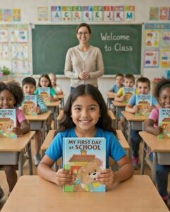 Help your child to overcome their anxieties and learn that school is fun! This cute story talks about the exciting activities your child may encounter during their first day at school such as learning to read, the alphabet, counting, lunch, recess, art and story time, plus making new friends. Even riding on the school bus can be a fun adventure. Give your child confidence as they enter this wonderful new phase of their life.