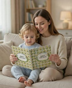 A beautifully illustrated baby book becomes a unique way of treasuring your child’s birth and makes an adorable; life-long family keepsake. The story records all the special details of your childs’ birth but is presented using cuddly characters like “Topper the Turtle,”; “Squeeky Squirrel,” and “Bouncy Bunny,” all of whom will keep your baby interested, even when your baby’s not a baby anymore.