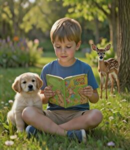 It’s that time of year. Your child is dressed up to go trick or treating but encounters a very large toad. This one talks! You and your child will be delighted and amused by the cautious toad’s unusual advice.