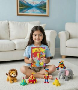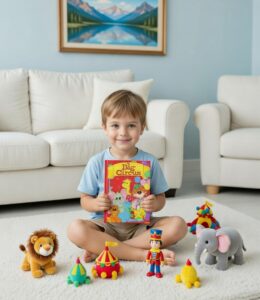“Step Right Up and See the Show” as your child leads the big circus brigade. When one of the clowns gets sick, your child is asked to take his place and lead the circus through the Big-Top on the back of Big Ben the elephant. Lion Tamers, Trapeze Artists, Stunt-Clowns, and trained seals can’t steal the show from your little boy or girl. This is their moment to be a part of the Greatest Show On Earth! Click on any book to read it.